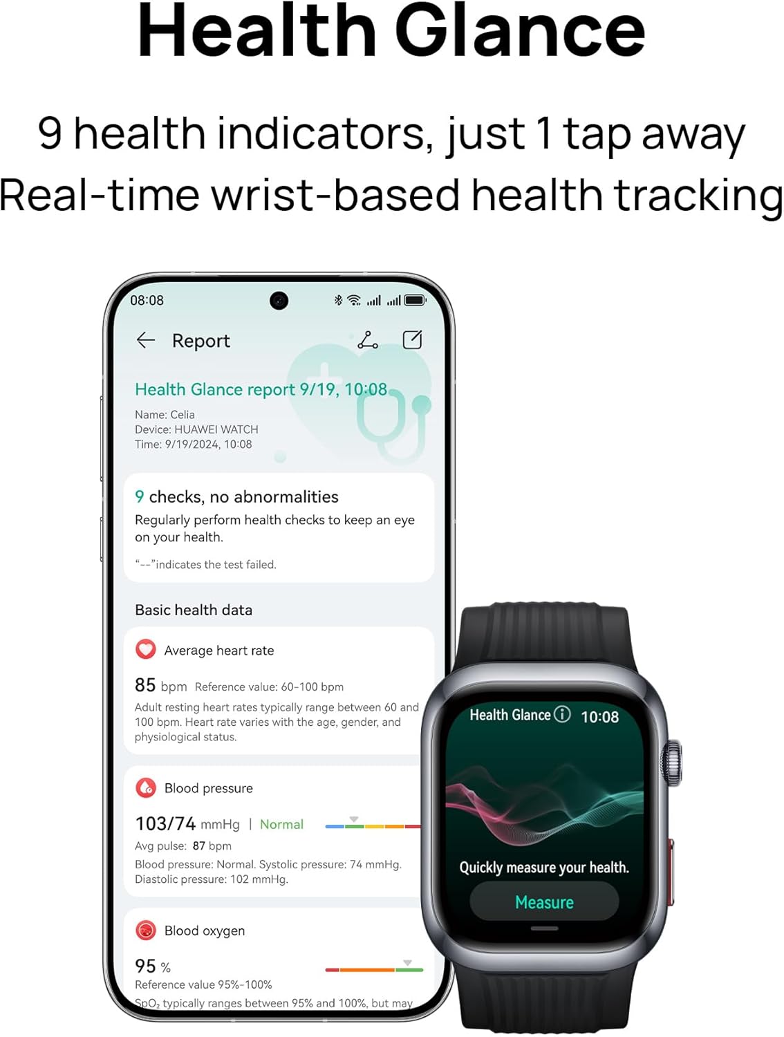 - 【All-Round Health Management】Get a handy Health Glance report in just a few moments, and browse 9 key indicators, with dynamic trends laid out in intuitive graphs and charts, to see what your body is telling you right away