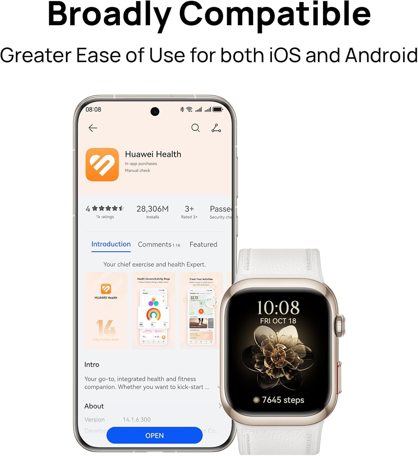 - 【Light and Slim Design】You can turn your watch into a timeless timepiece, with style watch faces and an Always-on Display (AOD) at your beck and call. You can even personalise the watch face to keep your most-used features literally close at hand