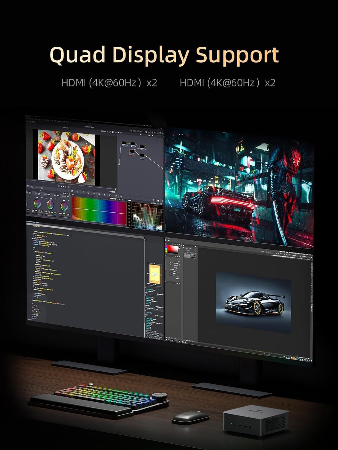 - 【LPDDR5 & PCIe 4.0 SSD】Equipped with 32 GB LPDDR5 (6400 MHz) and two M.2 2280 PCIe 4.0 SSD slots, supporting up to 4 TB of storage capacity, it offers fast read and ultra-fast write speeds to ensure smooth operation. and fast system response