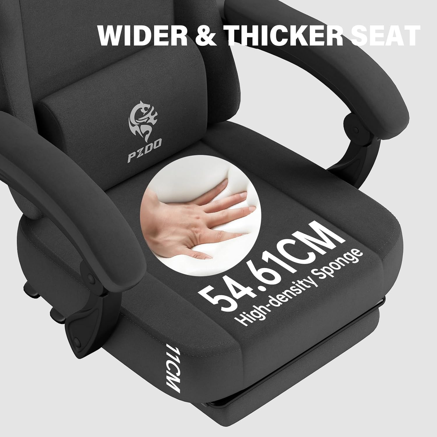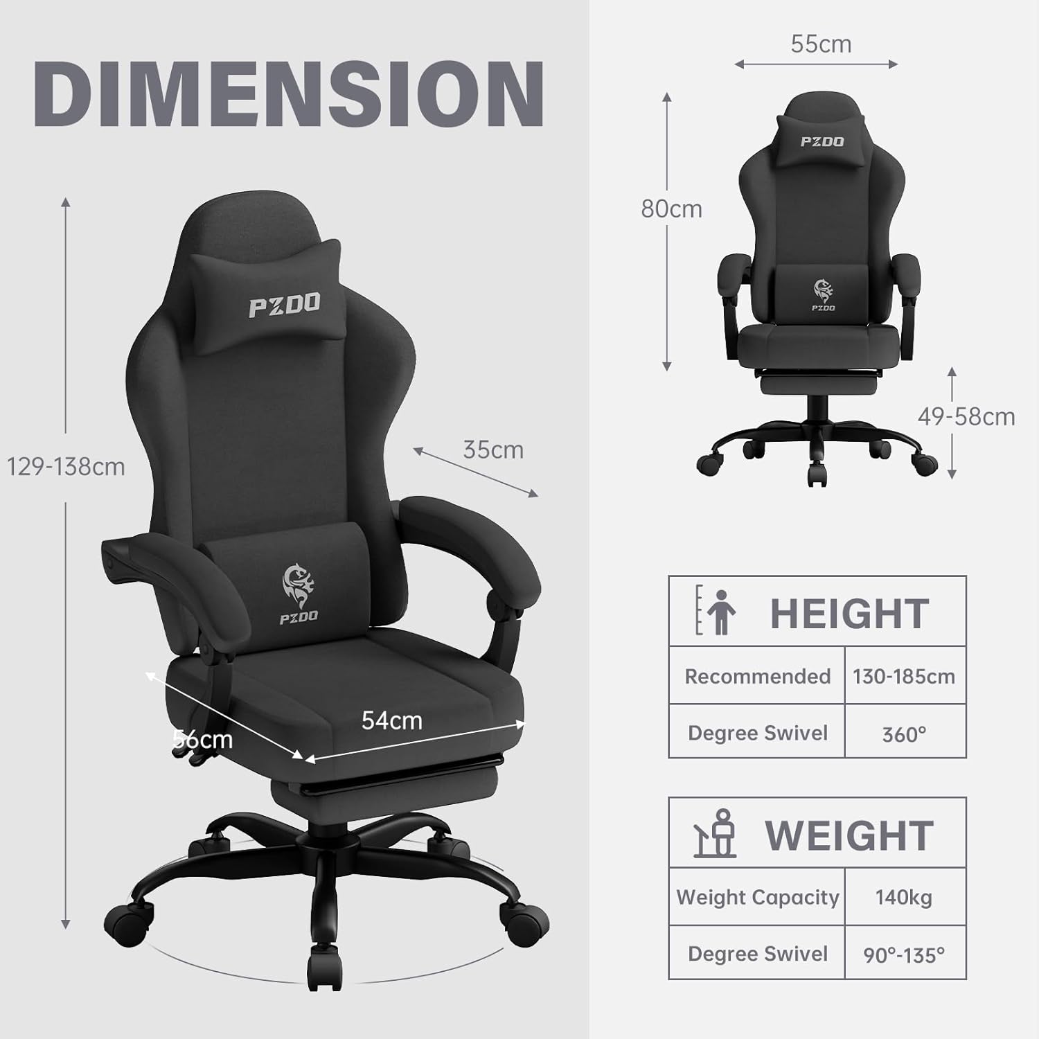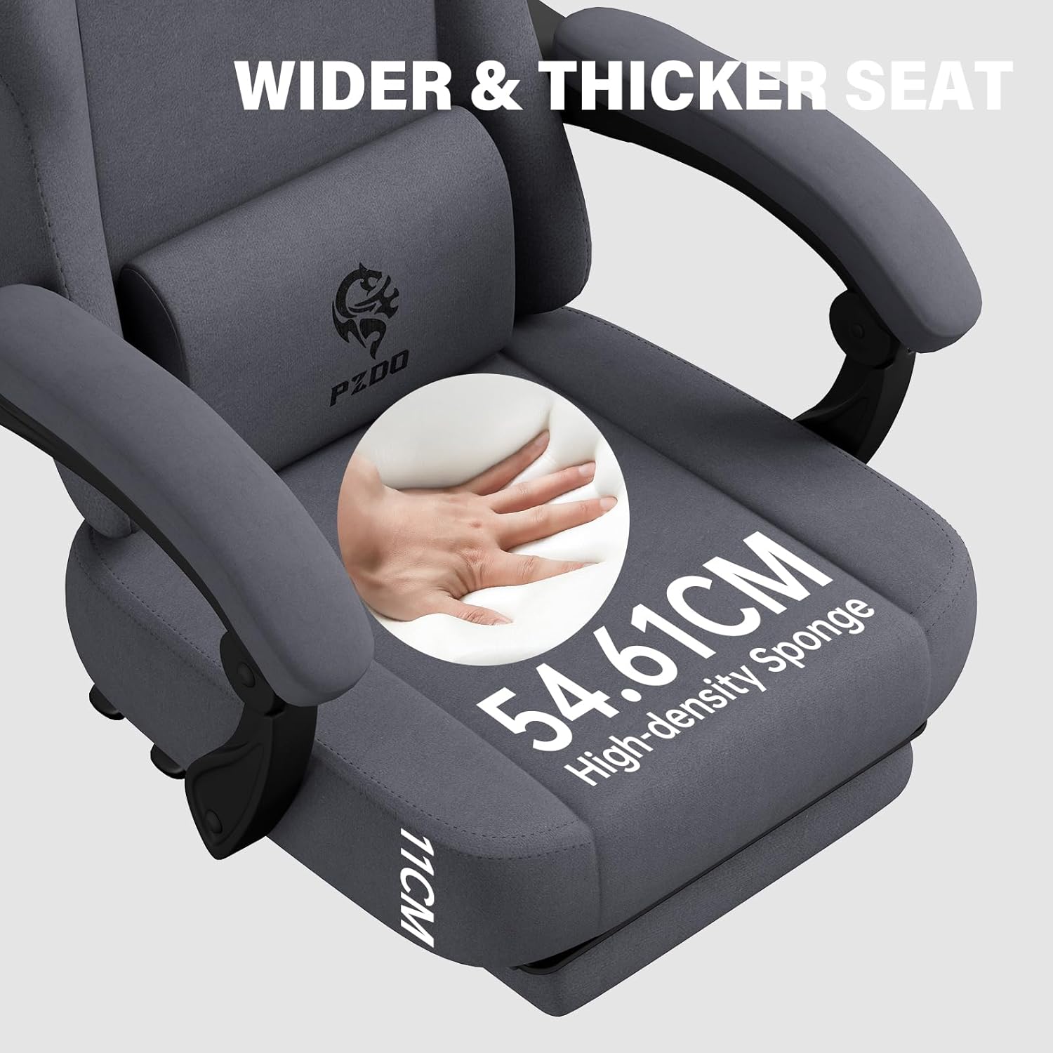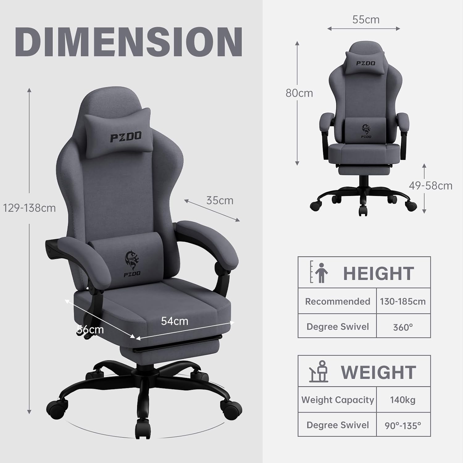 PZDO Ergonomic Gamer Chair Gaming Chair for Adults, Gaming Chair with footrest, Technical Fabric Office Chairs with Lumbar Support Height Adjustable, Teens, Gift, 150kg, Grey