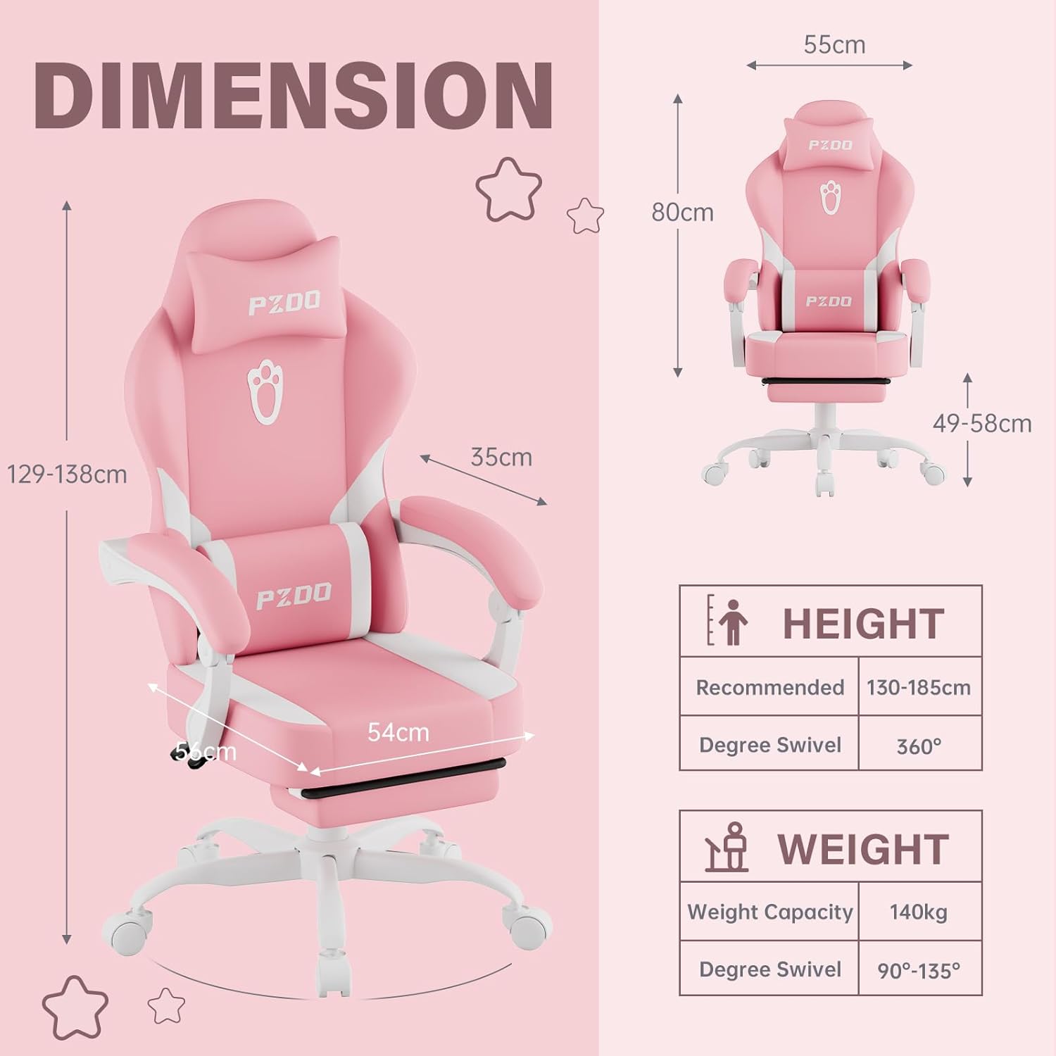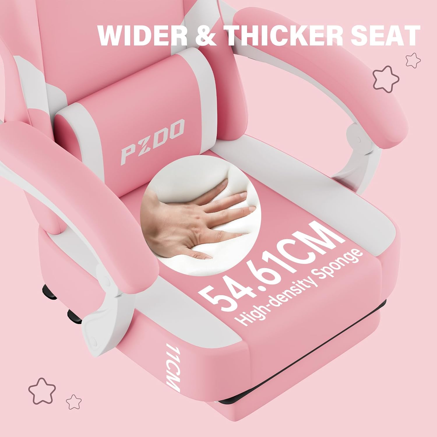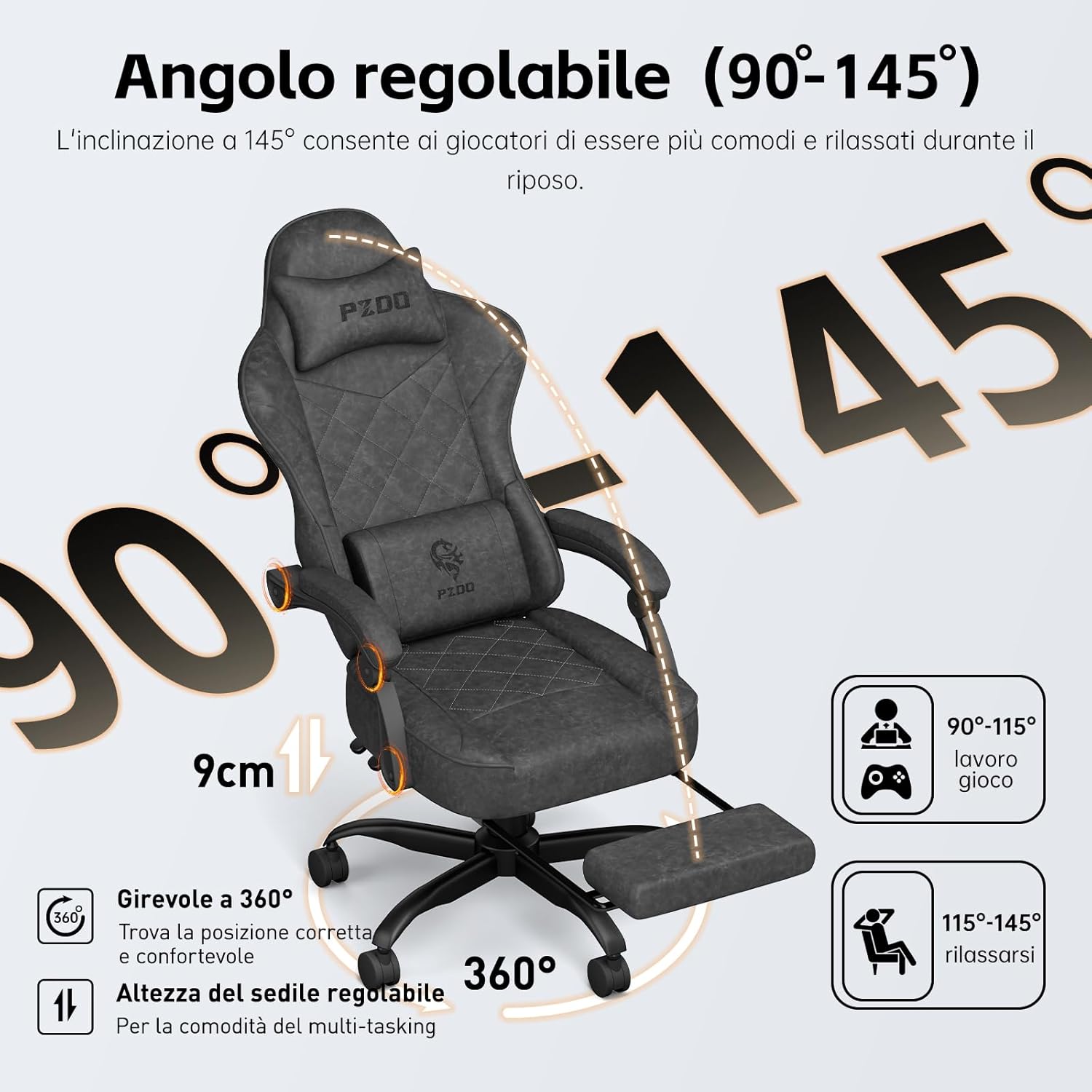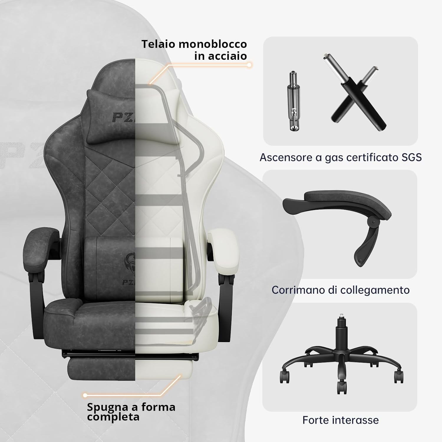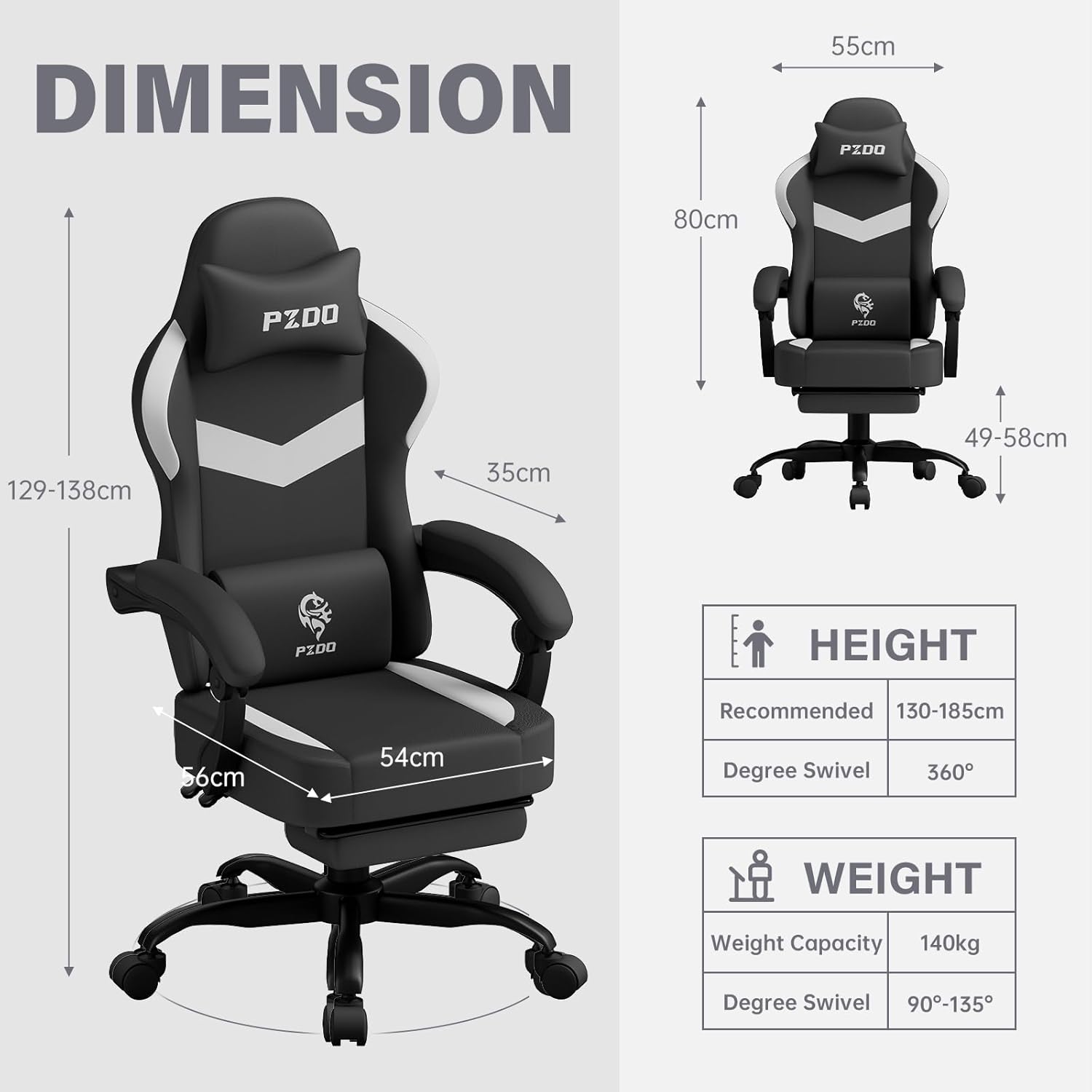PZDO Ergonomic Gamer Chair Gaming Chair for Adults, Gaming Chair with footrest, Technical Fabric Office Chairs with Lumbar Support Height Adjustable, Teens, Gift, 150kg, Grey