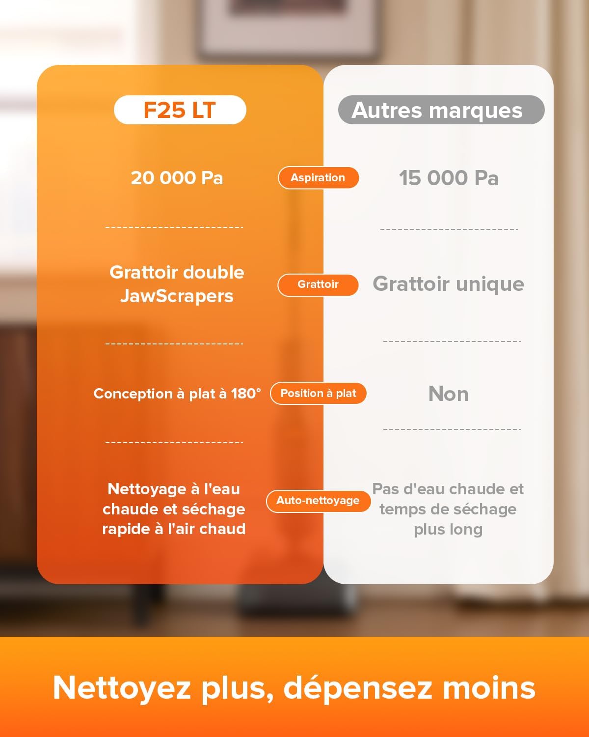 roborock F25 Ace Wet and Dry Mop Combo, 5 in 1, Cordless, 20,000 Pa, Self-Cleaning at 90°C and Quick Drying, Wheels Assisted, 60 min Autonomy, WiFi, Flat Design 180°